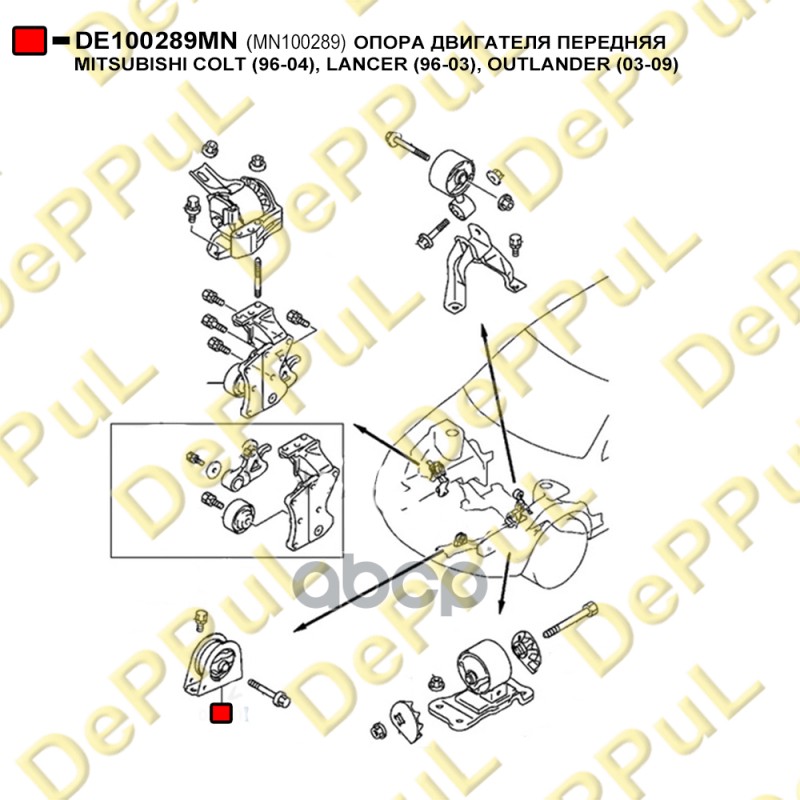 Бренд: DePPuL, артикул: DE100289MN, ОПОРА ДВИГАТЕЛЯ ПЕРЕДНЯЯ MITSUBISHI COLT 96-04,. |