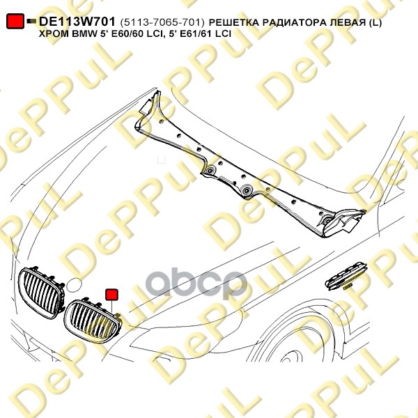 Купить запчасть DE113W701 РЕШЕТКА РАДИАТОРА ЛЕВАЯ L ХРОМ BMW 5 E6060 LCI, с доставкой в Эль-Монте.