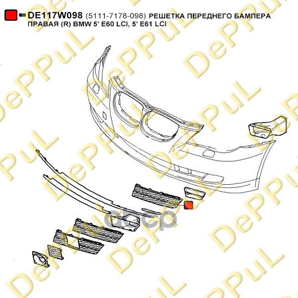 Купить запчасть DE117W098 РЕШЕТКА ПЕРЕДНЕГО БАМПЕРА ПРАВАЯ R BMW 5 E60 LCI с доставкой в Эль-Монте.
