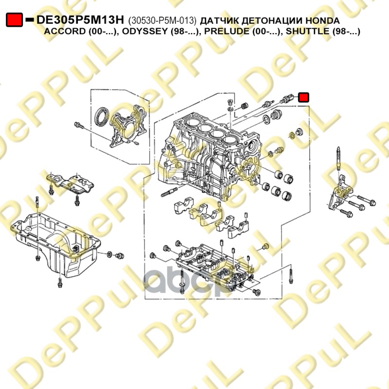 Бренд: DePPuL, артикул: DE305P5M13H, ДАТЧИК ДЕТОНАЦИИ HONDA ACCORD 00-..., ODYSSEY 9. |