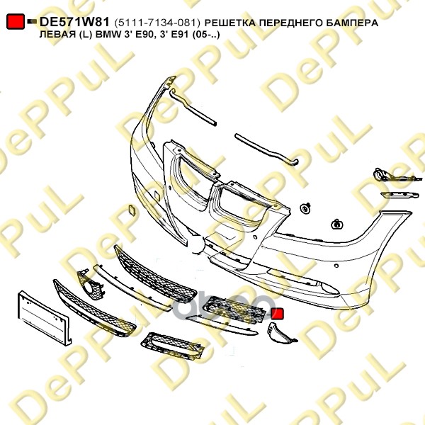 Купить запчасть DE571W81 РЕШЕТКА ПЕРЕДНЕГО БАМПЕРА ЛЕВАЯ L BMW 3 E90, 3 E с доставкой в Эль-Монте.