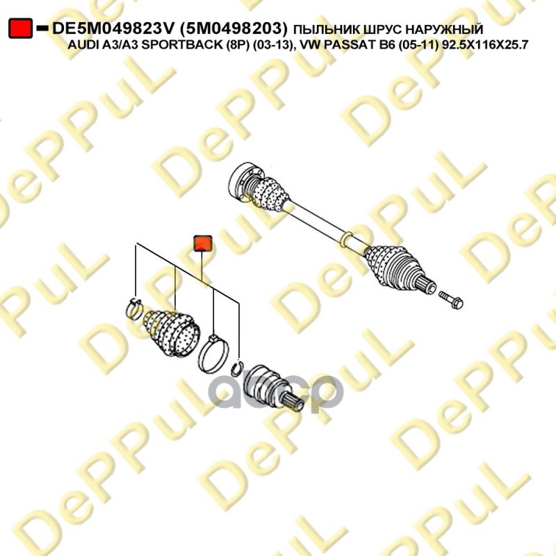 Бренд: DePPuL, артикул: DE5M049823V, ПЫЛЬНИК ШРУС НАРУЖНЫЙ AUDI A3A3 SPORTBACK 8P. |