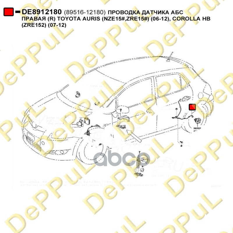 Купить запчасть DE8912180 ПРОВОДКА ДАТЧИКА АБС ПРАВАЯ R TOYOTA AURIS NZE15,ZRE15 06-12, COROLLA HB ZRE152 07-12 с доставкой в Эль-Монте.