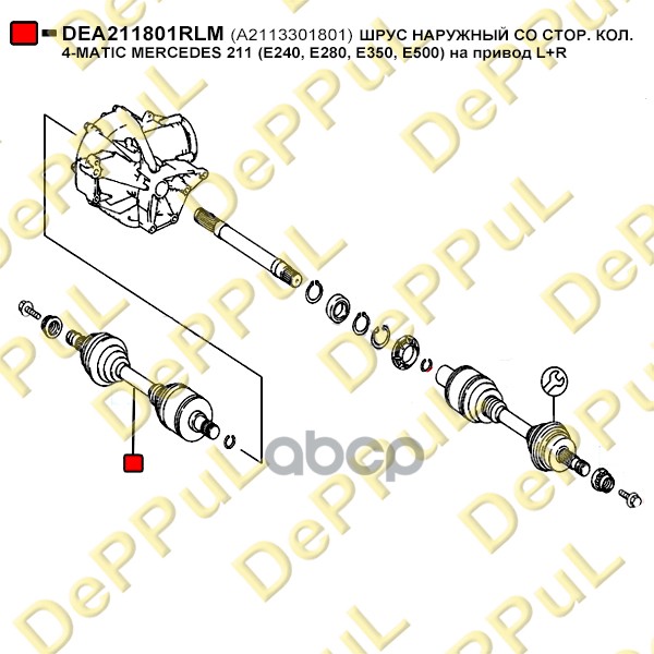 Бренд: DePPuL, артикул: DEA211801RLM, ШРУС НАРУЖНИЙ СО СТОР. КОЛ. 4-MATIC MERCEDES 211. |