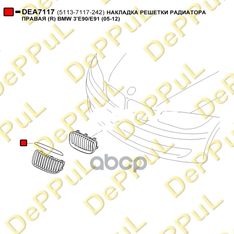 Купить запчасть DEA7117 Накладка решетки радиатора правая R с доставкой в Эль-Монте.