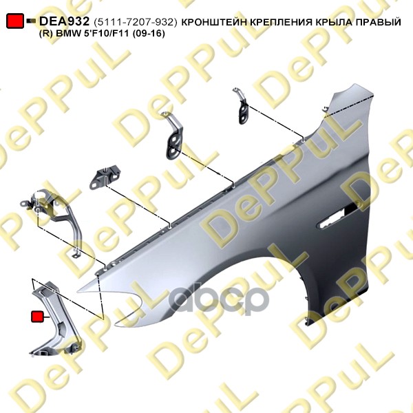 Купить запчасть DEA932 Кронштейн крепления крыла правый R с доставкой по России.