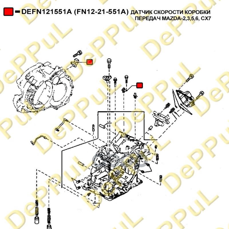 Бренд: DePPuL, артикул: DEFN121551A, ДАТЧИК СКОРОСТИ КОРОБКИ ПЕРЕДАЧ MAZDA-2,3,5,6, CX7. |