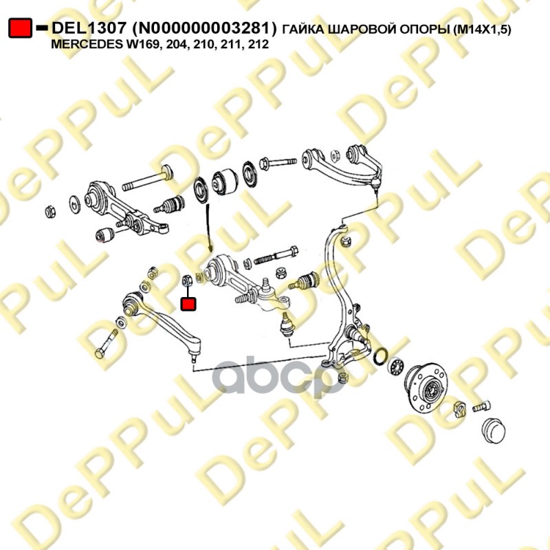 Купить запчасть DEL1307 Гайка шаровой опоры M14X1,5 с доставкой в Эль-Монте.