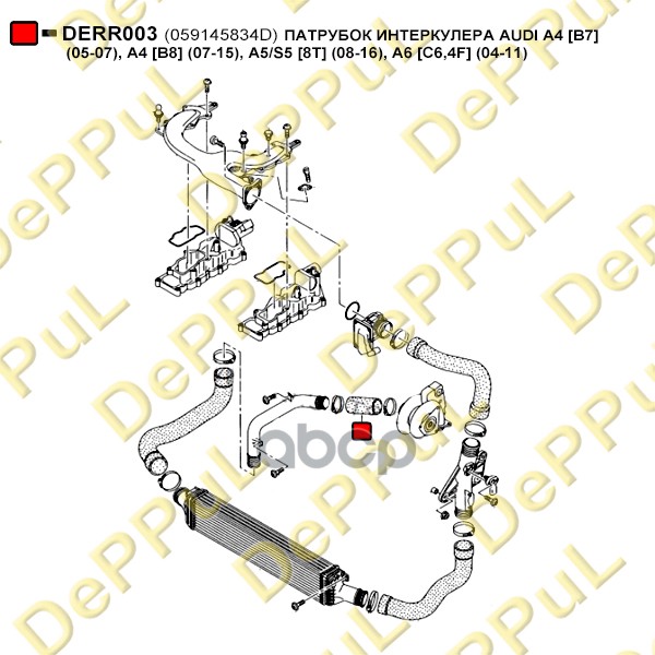 Купить запчасть DERR003 ПАТРУБОК ИНТЕРКУЛЕРА AUDI A4 B7 05-07, A4 B8 07-15, A5S5 8T с доставкой в Эль-Монте.