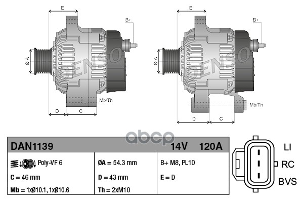 Купить запчасть DAN1139 Генератор 14V 120A FORD C-max I 1.6D 07-10 / Focus II 1.6D 04-12 / Fusion 1.6D 02-12 с доставкой по России.