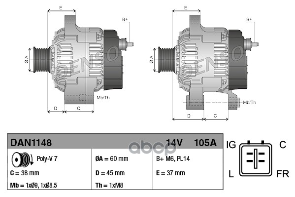 Купить запчасть DAN1148 Генератор 14V 105A HONDA Accord VIII 2.0 08-> / CR-V III 2.0 06-> с доставкой по России.