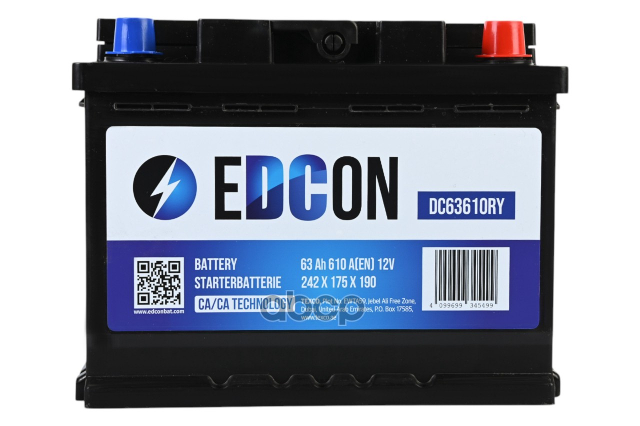 Купить запчасть DC63610RY аккумуляторная батарея +справа 63Ah 610A 242/175/190 DIN с доставкой по России.