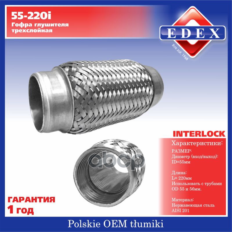 Купить запчасть 55220I Гофра глушителя трехслойная усиленная InterLock 55-220 FLEXIBLE IB D55 L220 с доставкой в Эль-Монте.