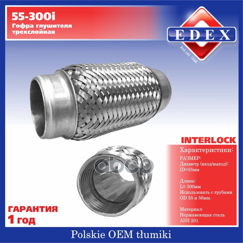 Бренд: EDEX, артикул: 55300I, КОМПЕНСАТОР ВЫХЛОПНОЙ ТРУБЫ АВТОМОБИЛЯ 55-300I. |