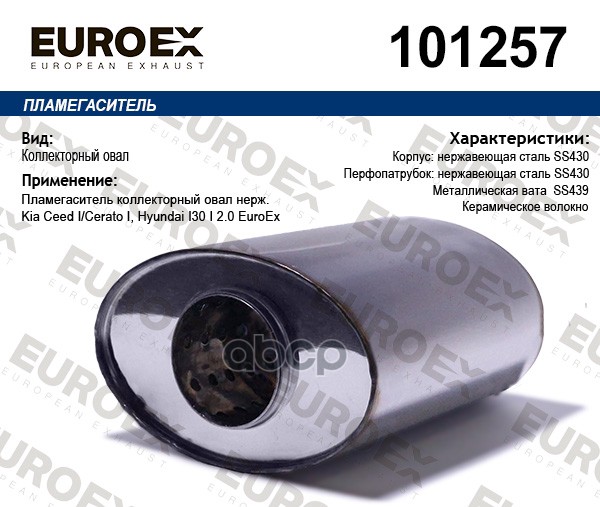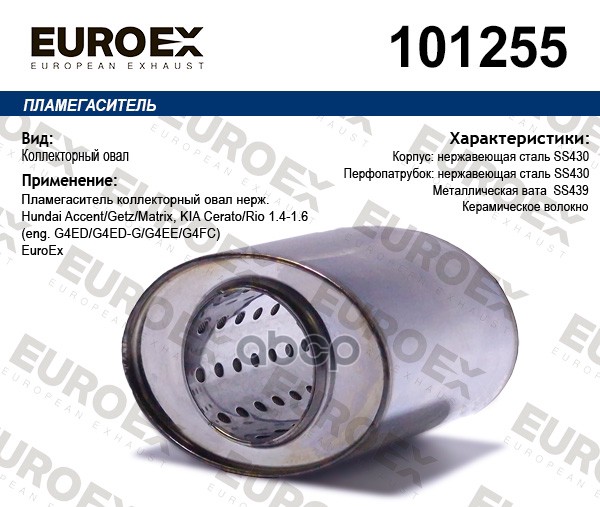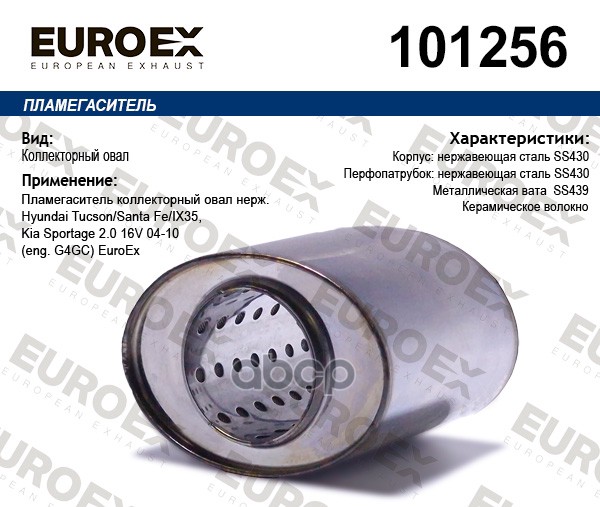Пламегаситель коллекторный нерж.сталь овал Hyundai Tucson/Santa Fe/IX35, Kia Sportage 2.0 16V 04-10 (eng. G4GC) EUROEX