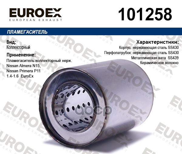 Пламегаситель коллекторный нерж.сталь FORD Fiesta V 01-07/Fusion 02-> mot.1,25…1,6L EUROEX