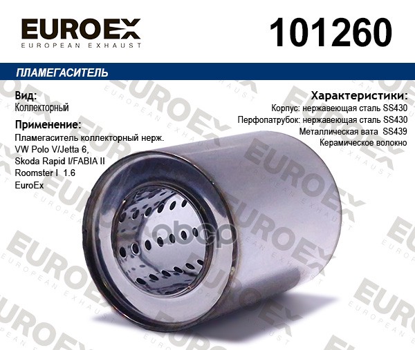 пламегаситель коллект. нерж VW Polo V/ Jetta, Skoda Rapid I/Fabia II/Roomster I 1.6 Euro