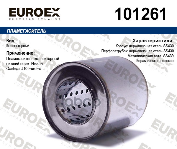 Пламегаситель коллекторный нерж.сталь (нижний) NISSAN Qashqai (J10) 06-13 mot.1,6/2,0L EUROEX