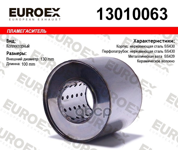 Пламегаситель коллекторный нерж.сталь 130x100x63 (диаметр трубы 63мм, общая длина 100мм диаметр бочонка 130мм)