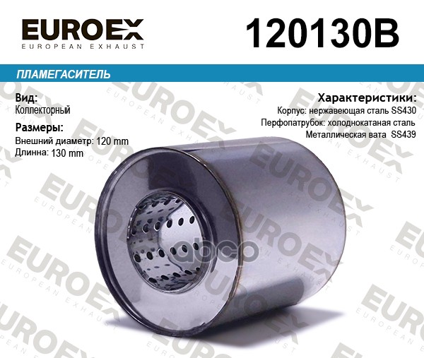 Пламегаситель коллекторный нерж.сталь 120x130x63 (диаметр трубы 63мм, общая длина 130мм диаметр бочонка 120мм)