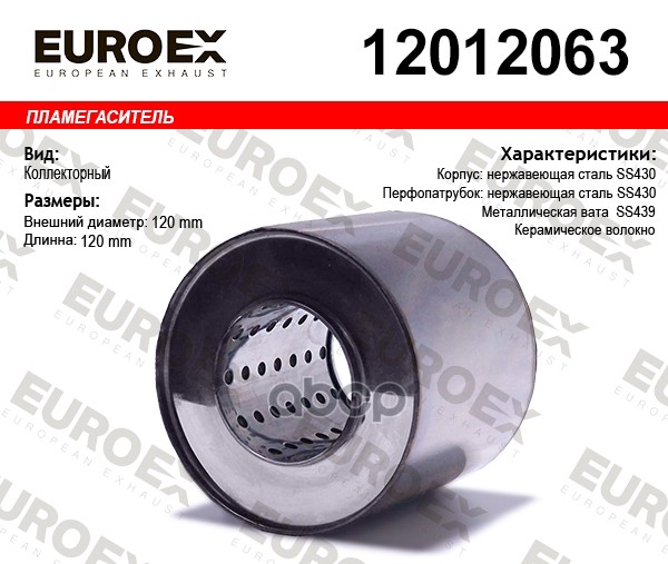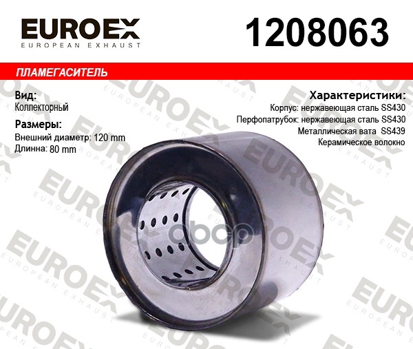 пламегаситель коллекторный 120x100x63 (диаметр трубы 63мм, длина 100мм, диаметр 120мм)