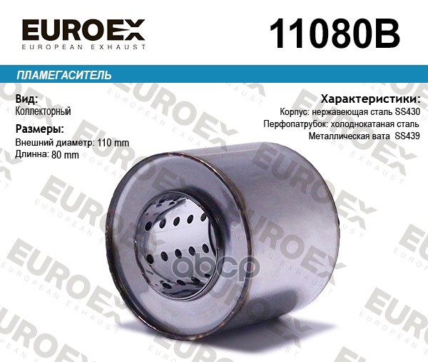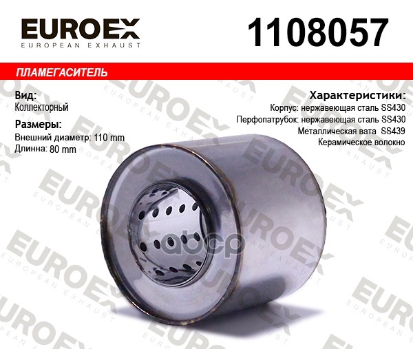 пламегаситель коллект. 110x80x57 диаметр трубы 57мм, общая длина 80мм диаметр бочонка 110мм