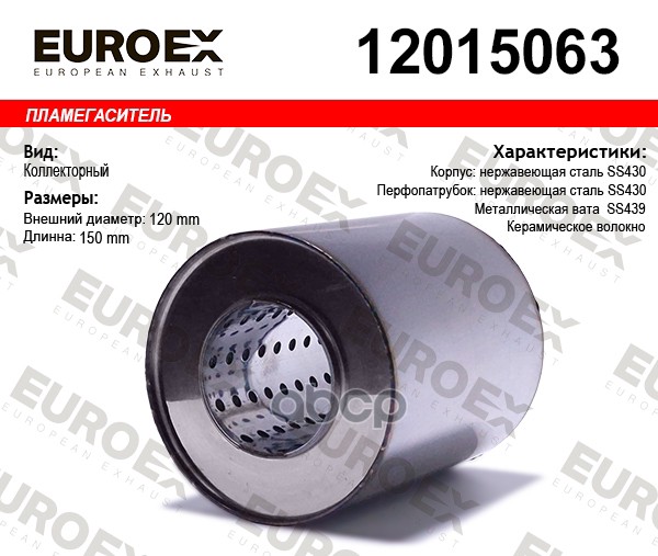 Пламегаситель коллекторный нерж.сталь 120x150x63 (диаметр трубы 63мм, общая длина 150мм диаметр бочонка 120мм)
