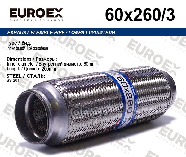Гофра глушителя 60x260 усиленная (INTERLOCK)
