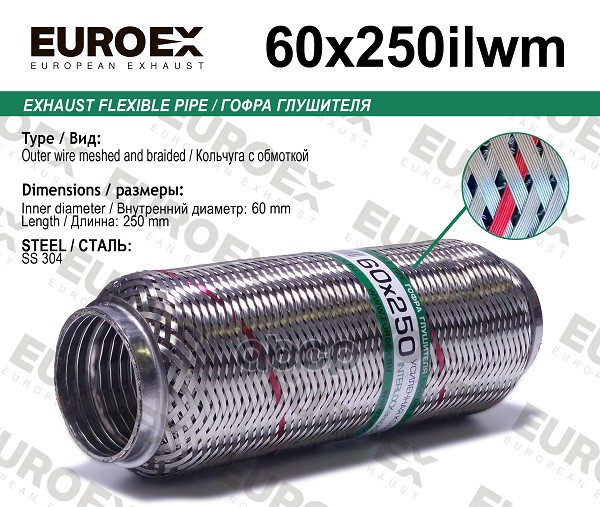 Гофра глушителя 60x250 усиленная (INTERLOCK)