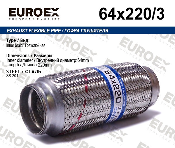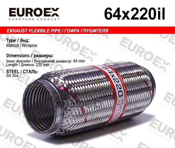 Гофра глушителя 64x220 усиленная (INTERLOCK)