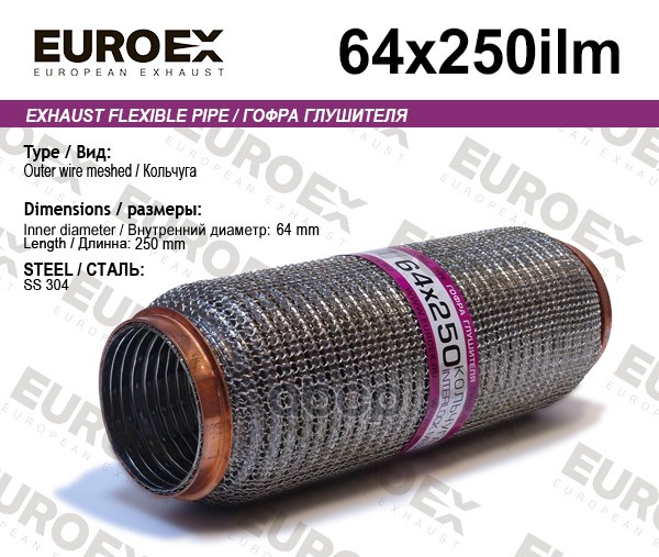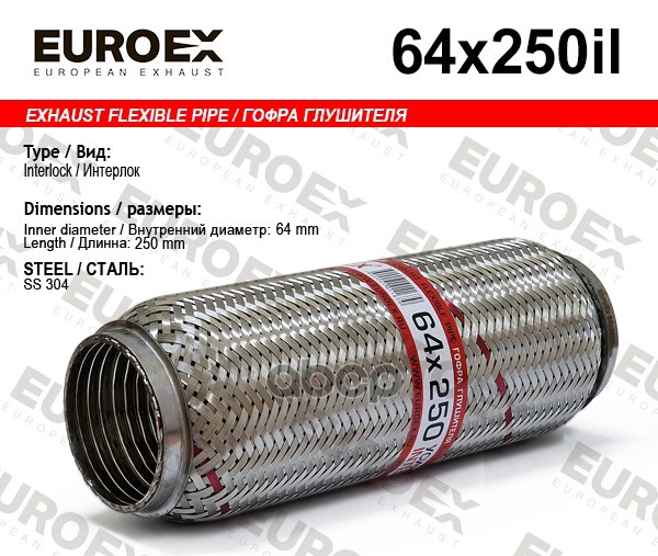 Гофра глушителя 64x250 усиленная (INTERLOCK)
