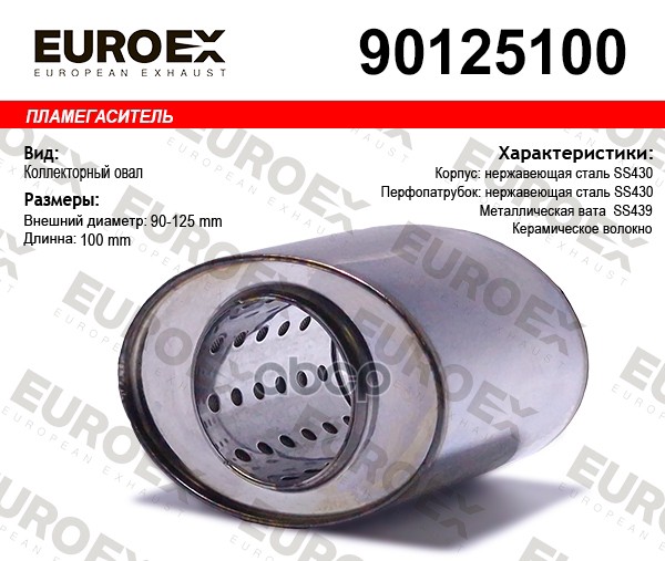 Пламегаситель коллекторный нерж.сталь овал 90x125x100 (общая длина 100мм диаметр бочонка 125x90мм)