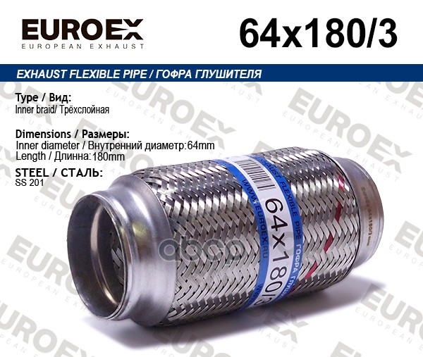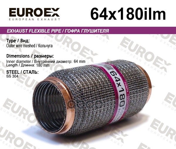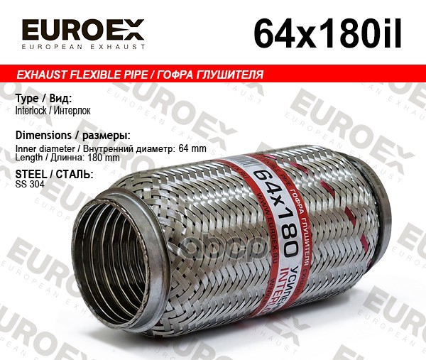 Гофра глушителя 64x180 усиленная (INTERLOCK)