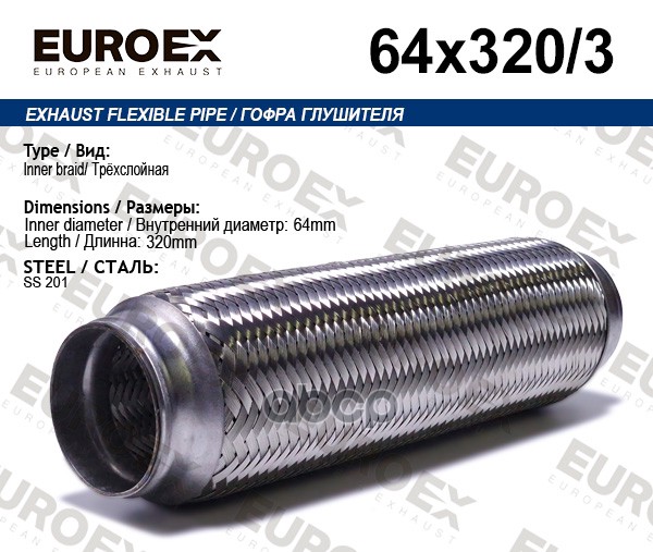 Гофра глушителя 64x320 3-х слойная