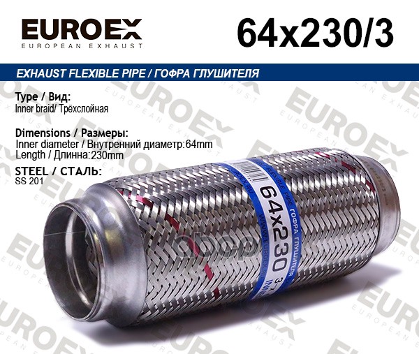 Гофра глушителя 64x230 усиленная (INTERLOCK)