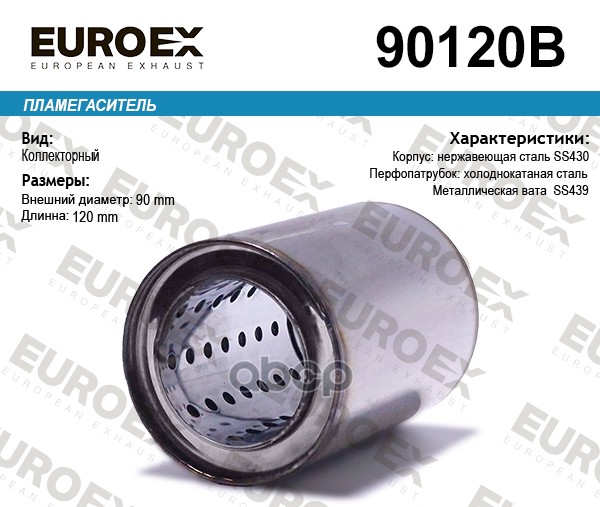 пламегаситель коллект90x120x57 нерж. (диаметр трубы 57мм, общая длина 120мм диаметр 90мм)