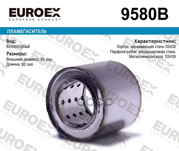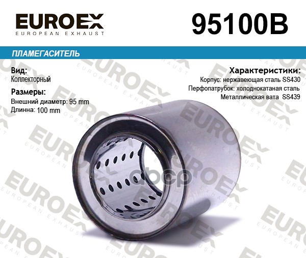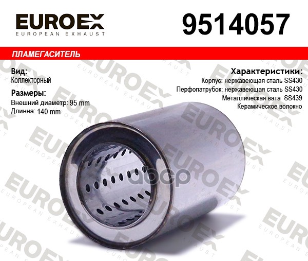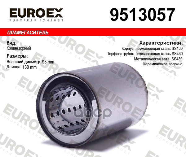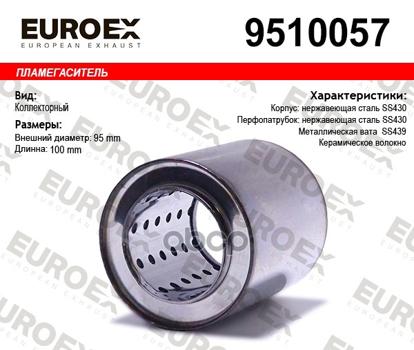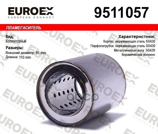 Пламегаситель коллекторный нерж.сталь 95x110x57 (диаметр трубы 57мм, общая длина 110мм диаметр бочонка 95мм)