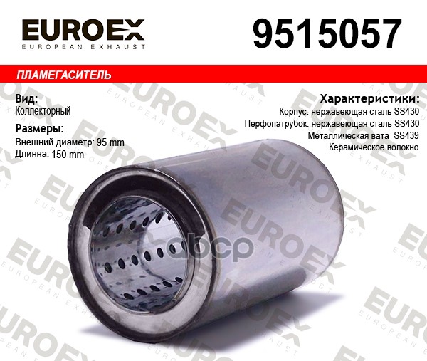 Пламегаситель коллекторный нерж.сталь 95x150x57 (диаметр трубы 57мм, общая длина 150мм диаметр бочонка 95мм)