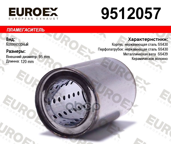Пламегаситель коллекторный нерж.сталь 95x120x57 (диаметр трубы 57мм, общая длина 120мм диаметр бочонка 95мм)