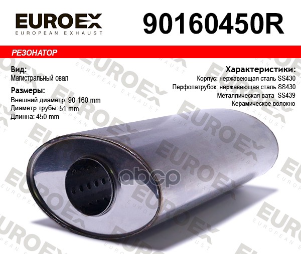 Резонатор магистральный овал. нерж. (90x160)x450x51 EuroEx