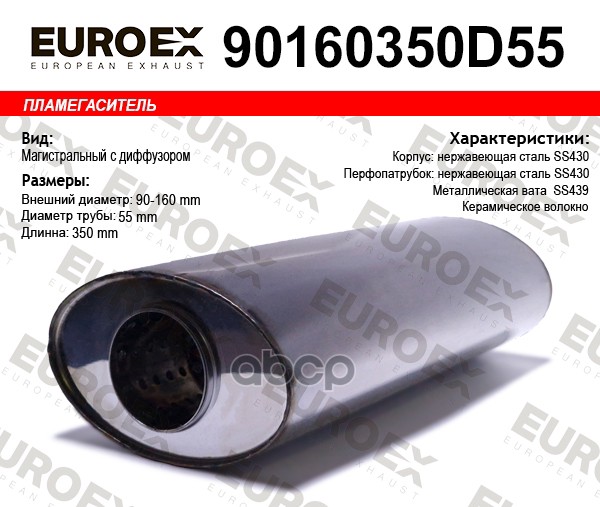 Пламегаситель магистральный овал. с диф. 90x160x350 нерж. (диаметр трубы 55мм, о
