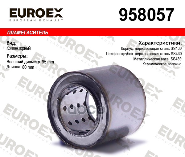Пламегаситель коллекторный нерж.сталь 95x80x57 (диаметр трубы 57мм, общая длина 80мм диаметр бочонка 95мм)