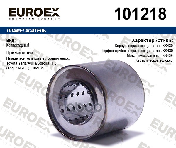 Пламегаситель коллекторный нерж.сталь Toyota Yaris/Auris/Corolla 1.3 (eng. 1NRFE) EUROEX