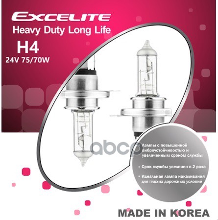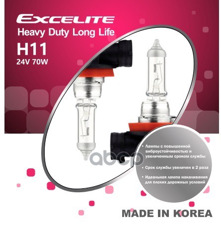 Набор автоламп EXCELITE 11602C H11 24V 70W PGJ19-2 Heavy Duty Long Life EXCELITE (К2/10)