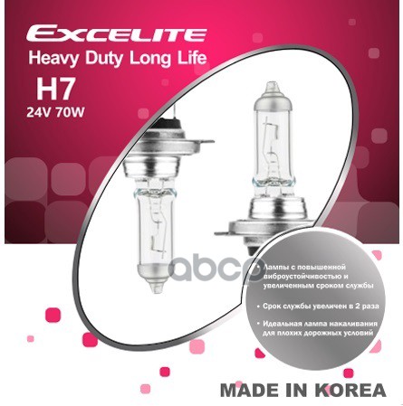 Набор автоламп EXCELITE 10802C H7 24V 70W PX26d Heavy Duty Long Life EXCELITE (К2/10)