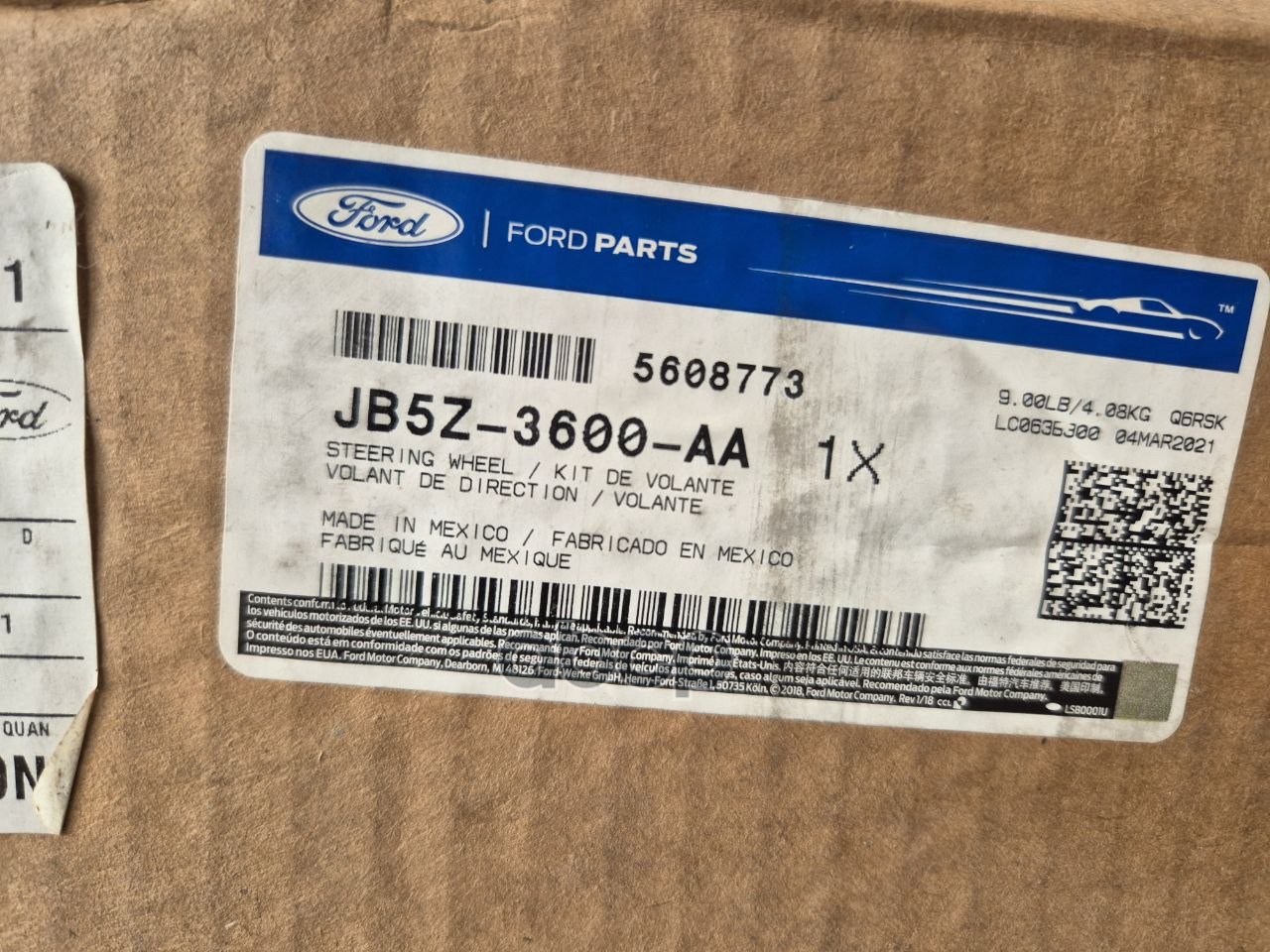 Бренд: FORD, артикул: JB5Z3600AA, Рулевое Колесо 00011. |