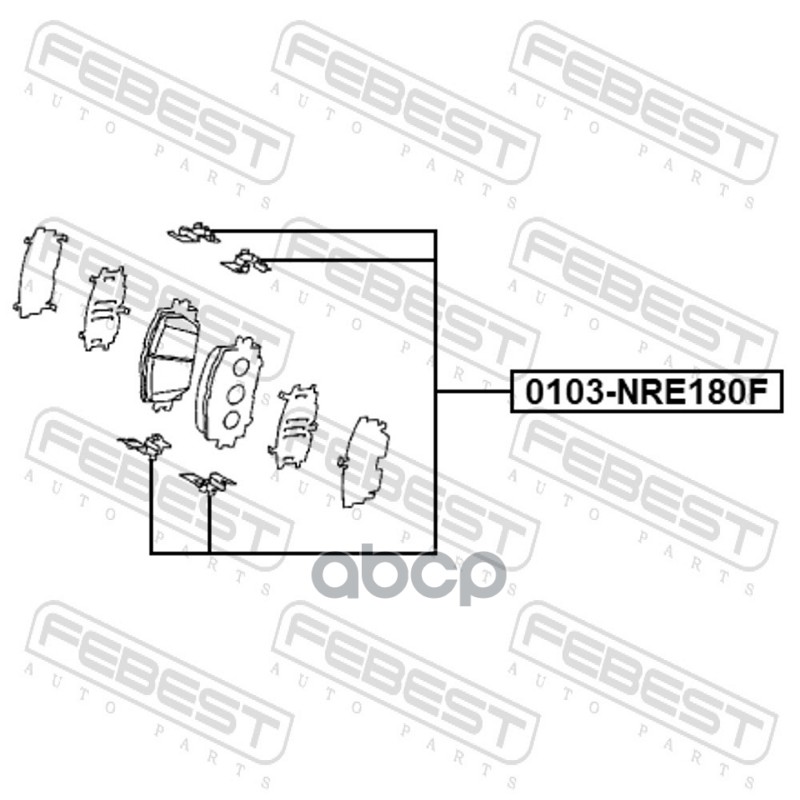 Бренд: Febest, артикул: 0103-NRE180F, Зажимы тормозных колодок Toyota ACA3# GSA3# ZSA3#/4# ASA3#/4# ALA3#/49 NZT260 ZRT26# ZRR7#/8# NZE14#/15#/16#/18# NRE150 ZRE14#/15#/162/18# ZZE14#/150 0103NRE180F, 0440994000, 04409-94000, 0494742050, 04947-42050, PFK587. |