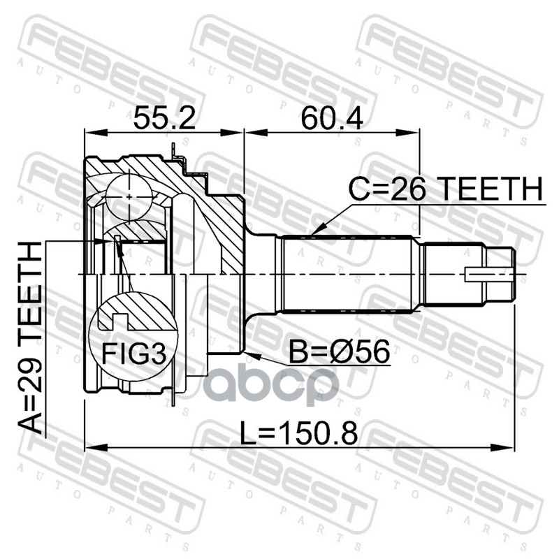 Наименование: ШРУС НАРУЖНЫЙ 29X56X26 TOYOTA COROLLA AE10#,CE10#,EE10# 1991.06-2002.06