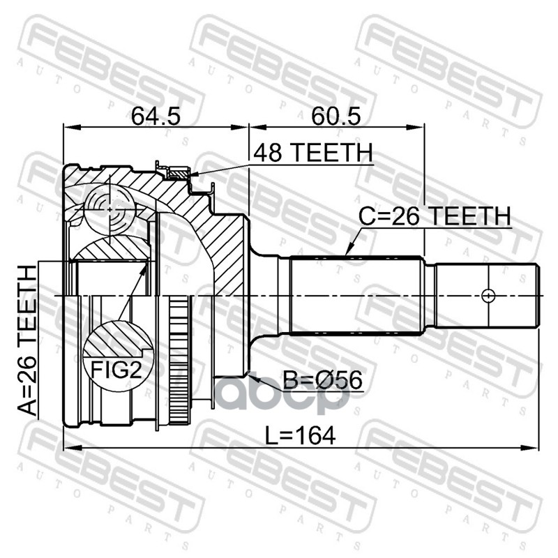 Бренд: Febest, артикул: 0110MCU10A48R, Шрус наружный 26x56x26 | зад прав/лев | LEXUS, TOYOTARX300 MCU1, HIGHLANDER ACU2,MCU2, RX300 MCU15, HARRIER ACU. |