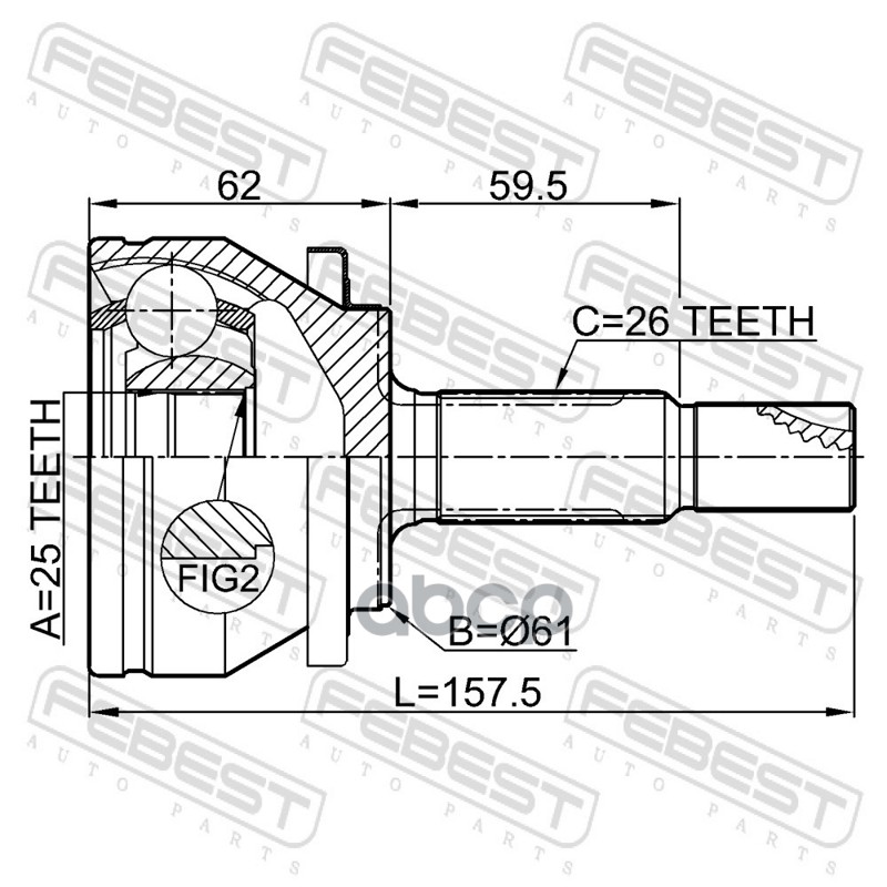 Бренд: Febest, артикул: 0110ZRE181, Шрус наружный 25x61x26. |